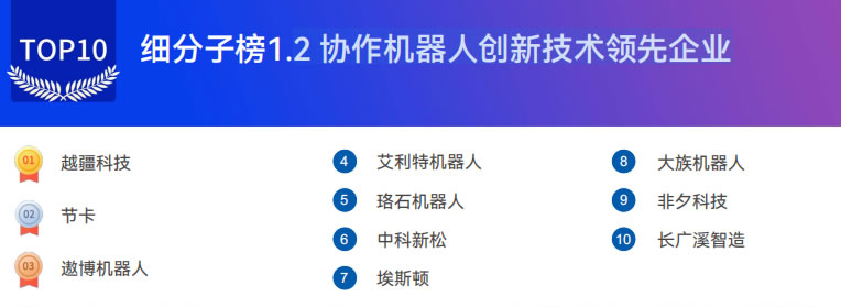 2025協作機器人創新技術領先企業top10